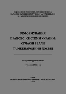 Герасимчук, О. П., ed. (2025) Реформування правової системи України: сучасні умови та міжнародний досвід : матеріали круглого столу (м. Острог, 19 травня 2025 р.). Вид-во НаУОА.