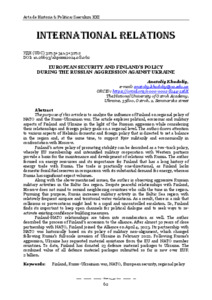 The purpose of this article is to analyze the influence of Finland on regional policy of NATO and the Russo-Ukrainian war. The article explores political, economic and military aspects of Finland and Ukraine in the light of the Russian aggression while considering their relationships and foreign policy goals on a regional level. The author draws attention to various aspects of Helsinki domestic and foreign policy that is directed to set a balance in the region and, at the same time, to support Kyiv militarily and economically in confrontation with Moscow. Finland’s active policy of promoting stability can be described as a two-track policy, whereby EU membership and intensified military cooperation with Western partners provide a basis for the maintenance and development of relations with Russia. The author focused on energy resources and its importance for Finland that has a long history of energy trade with Russia. The trade is practically one-directional, as Finland lacks domestic fossil fuel reserves in comparison with its substantial demand for energy, whereas Russia has significant export volumes. Along with the above-mentioned issues, the author is observing aggressive Russian military activities in the Baltic Sea region. Despite peaceful relationships with Finland, Moscow does not mind to remind neighboring countries who calls the tune in the region. Pursuing this purpose, Russia increases military activity in the Baltic Sea region with relatively frequent airspace and territorial water violations. As a result, there is a risk that collisions or provocations might lead to a rapid and uncontrolled escalation. So, Finland finds its important to keep open channels for political dialogue and to seek ways to reactivate existing confidence-building measures. Finland-NATO relationships are taken into consideration as well. The author described the process of Finland’s accession to the alliance. After almost 30 years of close partnership with NATO, Finland joined the Alliance on April 4, 2023. Its partnership with NATO was historically based on its policy of military non-alignment, which changed following Russia’s full-scale invasion of Ukraine in February 2022. Following Russia’s aggression, Ukraine has requested materiel assistance from the EU and NATO member countries. To date, Finland has donated 23 defence materiel packages to Ukraine. The combined value of all defence materiel packages submitted so far is now over EUR 2 billion.