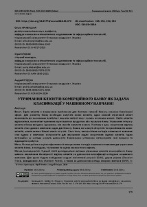 Результати. Отримані результати виявили високу точність побудованих моделей та їх здатність ефективно виявляти клієнтів банку, які мають схильність до відтоку. Висновки цієї статті можуть бути корисними для розробки стратегій утримання клієнтів не лише для комерційних банків, але й для різних секторів бізнесу, де втрата клієнтів є актуальною проблемою.