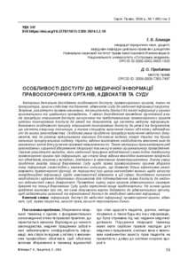 (This article provides a detailed examination of the specifics of access to patient medical information by law enforcement agencies such as the prosecution, investigative and inquiry bodies, as well as lawyers and courts. In particular, it considers the legal mechanisms that regulate access to such information within the framework of criminal and civil proceedings. The study includes a thorough analysis of the procedures by which defense attorneys and law enforcement representatives obtain temporary access to items and documents containing medical information. The features of the process of obtaining temporary access to items and documents that contain medical secrets, as well as the specifics of seizing such objects in accordance with legal requirements, are identified. Special attention is given to the procedure for seizing medical documents, which raises significant legal questions and conflicts between the norms of the Ethical Code of the Ukrainian Doctor and the Criminal Procedure Code of Ukraine. The need for amendments to these acts to eliminate legal uncertainty is emphasized. Additionally, a number of legislative guarantees for the preservation of medical confidentiality within criminal proceedings are analyzed. Cases where a medical worker is obliged to independently inform law enforcement agencies about information obtained in the course of professional duties, particularly in cases related to possible offenses, are separately considered. Significant attention is given to the analysis of the Supreme Court’s position regarding the right of law enforcement agencies to independently collect such information in the aforementioned situations, allowing for more effective enforcement without violating legal requirements for the protection of confidential information. Regarding the lawyer’s capabilities in this area, the issue of the necessity of providing additional documents to confirm the right to access the medical records of their client is examined. The norms of the bar self-governance bodies and the Supreme Court’s position on the aforementioned issues are assessed. Based on this, conclusions are drawn about which specific documents should be included in a lawyer’s request to ensure lawful and effective access to the necessary medical information.)