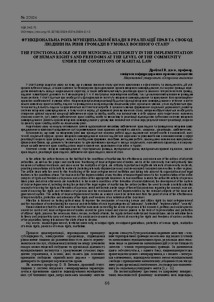 У статті автор акцентує увагу на тому, що в умовах воєнного стану критично важливими є ефективність та злагодженість дій усіх органів публічної влади, а також належне та безперервне функціонування органів місцевого самоврядування, які на рівні громади передусім вживатимуть заходи національного спротиву, а також забезпечуватимуть реалізацію прав та законних інтересів жителів громад, надання гуманітарної допомоги як її мешканцям (у т. ч. Й внутрішньо переміщеним особам), так і деокупованим/окупованим громадам інших регіонів. У статті йдеться про необхідність функціонування інституту місцевого самоврядування та врахування його організаційно-правових особливостей в умовах війни. Кінцевим результатом реалізації будь-якої функції місцевого самоврядування є втілення в життя всього комплексу прав та свобод людини та громадянина на відповідному локальному рівні, в реальних умовах, у яких відбувається фактична життєдіяльність людини та проявляються всі її життєві потреби. В сучасних умовах формування соціальної державності, розвитку системи місцевого самоврядування, в тому числі в період дії правового режиму воєнного стану, автором обґрунтовується необхідність створення цілісної наукової концепції забезпечення прав та свобод особи, яка включатиме в себе широке коло теоретичних положень стосовно поняття, суті, змісту забезпечення прав і свобод особи та механізму їх реалізації відповідними суб’єктами системи місцевого самоврядування. Дієвість органів місцевого самоврядування у цілому має визначатися з точки зору результативності реалізації, охорони та захисту прав і свобод особи на локальному рівні. Акцентовано увагу на пошуку оптимальних шляхів вдосконалення механізму забезпечення прав людини та громадянина місцевим самоврядуванням та важливості усвідомлення суті та розмежування таких правових категорій як «захист», «охорона», «реалізація», «забезпечення». Встановлено, що саме на місцевому рівні має проводитися основна робота щодо задоволення потреб особи в економічній, політичній, соціальній сферах; органи місцевого самоврядування повинні наділятися широкими та різноманітними повноваженнями у сфері реалізації і охорони прав громадян; володіти необхідними формами, засобами, методами роботи, законодавчо визначеною матеріальнофінансовою базою, що дозволить їм своєчасно та цілеспрямовано проводити заходи соціального, економічного характеру, які скеровуються на забезпечення прав і свобод різних верств населення, враховуючи стан війни в Україні.