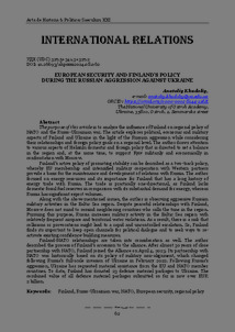 Khudoliy, A. (А. Худолій) (2024) European security and Finland’s policy during the Russian aggression against Ukraine (Європейська безпека і політика Фінляндії упродовж російської агресії проти України). Acta De Historia & Politica:Saeculum XXІ (8). pp. 62-72.