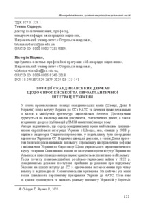 And Norway) on Ukraine’s accession to the EU and NATO as well as their vision of Ukraine’s place in the future European security architecture. The study is based on a qualitative analysis of documents, statistics, and secondary sources (media publications and analytics) on this topic. The authors note that among the Scandinavian countries, Sweden is the biggest supporter of Ukraine’s European integration. As one of the initiators of the Eastern Partnership in 2008, this country has acted as a ort of advocate for Ukraine within the EU. At the same time, both Sweden and Denmark have been providing assistance for many years aimed at reforms and bringing Ukraine closer to the EU. As for Ukraine’s Euro- tlantic course, the Scandinavian countries have never opposed Ukraine’s accession to the Alliance, And the authors describe their position as positive-neutral. After the outbreak of the ull-scale Russian-Ukrainian war in 2022, the Scandinavian states gradually came to a decision to support Ukraine on its path to EU membership, while simultaneously reserving the clear requirement that it meet the Copenhagen criteria. At present, they all welcome the prospect of Ukraine joining NATO. In addition, these countries offer and provide tangible assistance to Ukraine in its fight against the aggressor, in implementing reforms, and in promoting economic development. The article argues that the Scandinavian states have a clear vision of tectonic changes in the security architecture of the European region, which are currently in the process of formation and will depend, among other things, on the outcome of the Russian-Ukrainian war. According to this vision, Kyiv’s accession to the EU and NATO will help to achieve security, stability and prosperity both in Ukraine and throughout Europe. The reaction of the Northern European countries to Russia’s full-scale invasion of Ukraine has shown that they are our reliable partners, and Ukraine should make maximum efforts to develop this direction of its foreign policy.)