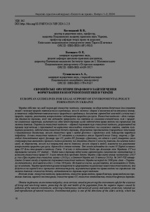 Костицький, В. В. and Балацька, О. Р. and Суходольська, А. А. (2024) Європейські орієнтири правового забезпечення формування екологічної політики в Україні (European guidelines for legal support of environmental policy formation in Ukraine). Науково-практичний журнал «Екологічне право» (1–2). pp. 16-20.