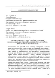 Близняк, О. (O. Blyzniak) and Риков, А. (A. Rykov) (2023) Процес євроінтеграції України в умовах повномасштабної російсько-української війни: проблеми та перспективи. Міжнародні відносини, суспільні комунікації та регіональні студії, науковий журнал Волинського НУ імені Лесі Українки (2(16)). pp. 119-135.