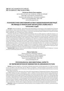 (Ukrainian emigration is an extremely multifaceted phenomenon, therefore approaches to its study and research can be very different. The article deals with the reflection of emigration in Ukrainian literature and journalism as the most psychological and emotional source of information, which always pays attention to the problems of the time and in its own way looks for ways to solve them. Starting from the end of the 19th century, that is, from the first stage of emigration, the beginnings of Ukrainians’ departure abroad were different. Mainly, each stage is characterized as «labor» or «political» (sometimes these two directions were synthesized), but always leaving from the native land caused deep experiences and emotions associated with the unknown, a different way of life, a break with the family, closest people in general. In the scholarly works, the penultimate «worker» stage, or as it is also generally called the «іtalian» stage of emigration, has been insufficiently described. Not studied is the last stage, which is connected with today’s war on the territory of Ukraine, which is still continuing. But the artistic thinking of the people, associated with the emotional perception of events in extreme conditions, manifests itself faster. And we already have new works. Perhaps they cannot yet compete with the works of V. Stefanyk, Y. Sverstyuk, U. Samchuk and other writers who have already become classics, but these works are actual and there is a need for them. There are still not enough scientific works in which the issue of emigration is considered in the literature.)