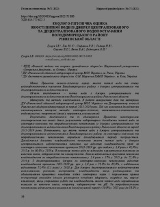 Стаття присвячена еколого-гігієнічній оцінці якості питної води із джерел централізованого та децентралізованого водопостачання Володимирецького району Рівненської області.