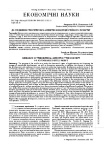 Метою статті є дослідження теоретичного аспекту впровадження та зміни концепції стійкого розвитку. У статті проаналізовано розвиток концепції стійкого розвитку в ході історії з точки зору зміни назви концепції, сфер, в яких вона застосовується, та актуальних в конкретні періоди проблем. Проаналізовано роботи відомих вітчизняних вчених, виділено підходи до визначення сутності концепції сталого розвитку та визначальні змістові характеристики. Також проаналізовано підходи зарубіжних науковців до трактування поняття «стійкий розвиток». Проаналізовано різницю між підходами вітчизняних та зарубіжних науковців. Сформульовано власне визначення сутності концепції стійкого розвитку на основі досліджених матеріалів та обґрунтовано нові виклики для концепції стійкого розвитку в умовах пандемії COVID-19.