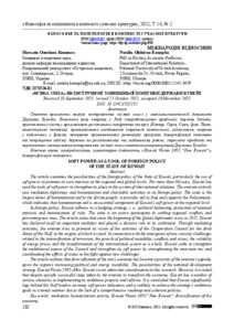 Стаття присвячена аналізу інструментів «м’якої сили» у зовнішньополітичній діяльності Держави Кувейт. Визначено роль емірату у Раді співробітництва арабських держав Затоки, простежено участь у врегулюванні регіональних конфліктів та криз (Катар, Сирія, Ємен, Ірак, Ліван, палестинське питання), проаналізовано особливості стратегії політичного геджування, зокрема у відносинах з Іраном; авторкою проаналізовано реалізацію програми диверсифікації економіки та покращення іміджу держави на регіональному та глобальному рівнях; окреслено проблеми та перспективи застосування інструментів «м’якої сили» політичним керівництвом Держави Кувейт