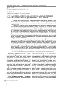 Кочерга, С. (S. Kocherha)) (2022) «Стефаниківське письмо» як номінальна категорія в літературознавчому дискурсі XX – поч. XXI ст. ("Stefanykian writing" as a nominal category in the literary discourse of the XX – early XXI centuries). Вчені записки ТНУ імені В. І. Вернадського. Серія: Філологія. Журналістика, 33(72) (№1,ч.2). pp. 226-232.