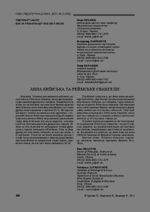 У статті розглядаються відомості, що стосуються Реймського Євангелія, яке використовувалося при коронації французьких монархів. Утверджується думка, що цю пам’ятку писемності до Франції привезла Анна Київська, дочка князя Ярослава Мудрого, що стала французькою королевою в середині ХІ ст. На користь цієї версії у статті висуваються такі аргументи: у кириличній частині Реймського Євангелія на другій сторінці згадується апостол Філіпп, якого вважали хрестителем скіфів. Анна ж дає таке ім’я своєму первістку, хоча воно в той час було нетиповим для французьких королів. Пізніше це ім’я стало для них популярним і чимало французьких королів іменувалися Філіппами. Саму ж Анну французькі документи іменують не лише русинкою, а й скіф’янкою. У той час на Заході етноніми «русин» і «скіф» часто ототожнювалися. Анна могла розглядати апостола Філіппа як покровителя Скіфії, власне, українських земель, які в ті часи часто іменувалися Руссю. У публікації згадується, що Анна залишила власноручний підпис «Ана Регіна» під одним латиномовним документом 1063 року, що співпадає з написанням літер на сторінках Реймського Євангелія. При написанні свого імені королева Франції використовувала форму «Ана», тобто своє ім’я писала з одним «н». Саме таке написання зустрічаємо в Реймському Євангелії, хоча в той час у латинських, а також і в деяких слов’янських текстах це ім’я писалося з двома «н». У статті також розглядаються дві можливі версії походження Реймського Євангелія – чеська й київська. Доведено, що лінгвістичний аналіз цієї пам’ятки дає підстави стверджувати про її київське походження. Висловлюється гіпотеза, що Анна Київська везла Реймське Євангеліє до Франції як частину свого посагу.