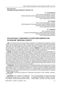 Шершньова, О. В. (O. Shershnova) and Бондар, В. Д. (V. Bondar) and Якуніна, К. І. (K. Yakunina) (2021) Educational component in SDGs implementation in Ukraine: regional aspect (Освітній компонент у впровадженні ЦСР в Україні: регіональний аспект). Держава та регіони. Серія: Державне управління (2(72)). pp. 77-83.