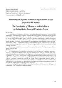 Мартинюк, Р. (R. Martyniuk) (2021) Конституція України як втілення установчої влади українського народу (The Constitution of Ukraine as an Embodiment of the Legislative Power of Ukrainian People). Facta Simonidis (4(14)). pp. 114-144.