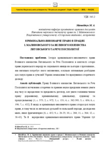 Матвійчук, М. (M. Matviichuk) (2021) Кримінально-виконавче право в працях І. Малиновського за Великого князівства Литовського та Речі Посполитої (Criminal executive law in the works of I. Malynovskyi in the time of The Grand Duchy of Lithuania and The Polish-Lithuanian Commonwealth). Часопис НаУОА Серія «Право» (1 (23)).