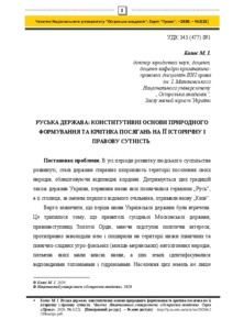 Колос, М. І. (M. Kolos) (2020) Руська держава: конститутивні основи природного формування та критика посягань на її історичну і правову сутність (State of Rus: constitutional fundamentals of natural formation and criticism of environments on its historical and legal essence). Часопис Національного університету "Острозька академія". Серія "Право" (2(22)).