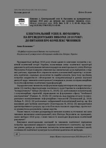 Близнюк, А. (A. Blyzniuk) (2025) Електоральний успіх В. Януковича на президентських виборах 2010 року: до питання про комплекс чинників (Viktor Yanukovych’s electoral success in the 2010 presidential election: on the question of a complex set of factors). Агора. Журнал соціальних наук (3(1)). pp. 62-65. ISSN 27869210