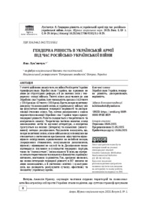Лук’янчук, Я. (Ya. Lukianchuk) (2025) Гендерна рівність в українській армії під час російсько-української війни (Gender equality in the Ukrainian army during the russian-Ukrainian war). Агора. Журнал соціальних наук (3(1)). pp. 8-29. ISSN 27869210