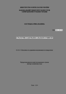 Костецька, Ірина Іванівна (2024) Стратегічне планування сільського розвитку : реферат дисертації на здобуття наукового ступеня доктора економічних наук. Doctoral thesis, Національний університет біоресурсів і природокористування України.