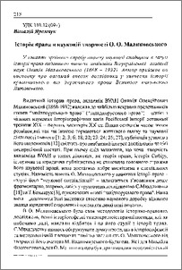 Яремчук, В. (V. Yaremchuk) (2002) Історія права в науковій творчості О. О. Малиновського (The History of Law in Malynovsky’s creative work). Наукові записки. Історичні науки (Вип. 2). pp. 218-228.