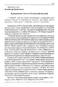 Трофимович, В. (V. Trofymovych) (2002) Відродження і поступ Острозької академії (Revival and further development o f Ostroh Academy). Наукові записки. Історичні науки (Вип. 2). pp. 153-166.