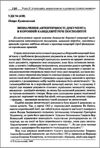 Кулаковський, П. (P. Kulakovskii) (2000) Визначення автентичності документа в коронній канцелярії Речі Посполитої. Наукові записки. Історичні науки (Вип. 1). pp. 196-200.