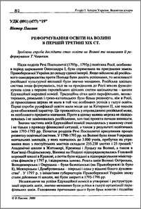 Павлюк, В. (V. Pavliuk) (2000) Реформування освіти на Волині в першій третині XIX ст. Наукові записки. Історичні науки (Вип. 1). pp. 82-94.
