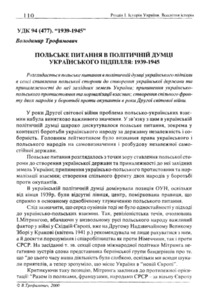 Трофимович, В. (V. Trofymovych) (2000) Польське питання в політичній думці українського підпілля: 1939-1945. Наукові записки. Історичні науки (Вип. 1). pp. 110-125.