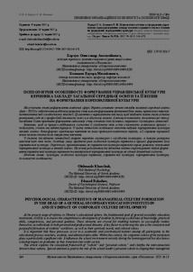( At the present stage of reforms in Ukraine’s educational sphere, the fundamental goal of general secondary education institutions (GSEIs) is to ensure the comprehensive development of students by forming a solid base of knowledge, practical skills, competencies, and personal qualities. These elements are crucial for enabling learners to successfully realize themselves as individuals in both personal and professional domains. A key factor in achieving this aim is the consistent and purposeful formation of students’ worldview, as well as their spiritual, moral, and cultural values. It is important that these processes occur in a systematic and synchronized manner among all participants in the educational process–teachers, students, and administrators alike. Within this context, the corporate culture of the institution plays a particularly significant role. It influences the school environment not only during the learning period but also leaves a lasting impact on graduates as they transition into wider society. This article explores the conceptual framework of “culture” and “personal culture,” and clarifies the interconnection between these notions. Special attention is paid to the role of the school leader’s personal culture in shaping their managerial culture. Furthermore, the paper analyzes how the leader’s managerial culture contributes to the development of a positive corporate culture within the educational institution. Based on the research findings, the article presents structured models for the formation of both managerial culture in school leadership and internal corporate culture as a cohesive and dynamic system)