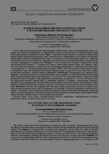 | Ключові слова: | вища школа, метакогнітивні навички, перформанс, перформативне навчання, рефлексивні вміння, психологія розуміння, студенти. (performance, performative learning, reflective skills, metacognitive skills, psychology of understanding, students, higher education) |