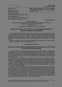 У статті проаналізовано діяльність Мануели Саенс як активного політичного суб’єкта в оточен- ні Сімона Болівара у період 1822–1830 рр. Досліджено її роль у державному апараті Великої Колумбії, зокрема участь у дипломатичному листуванні, управлінні архівами та розвідувальній діяльності. Висвітлено трансформацію її образу від «супутниці визволителя» до впливової політичної фігури, чиї дії безпосередньо впливали на збереження стабільності режиму Болівара в умовах внутрішніх конспірацій та криз.
