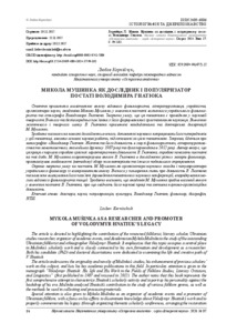(. The article is devoted to highlighting the contribution of the renowned folklorist, literary scholar, Ukrainian studies researcher, organizer of academic events, and Academician Mykola Musinka to the study of the outstanding Ukrainian folklorist and ethnographer Volodymyr Hnatiuk. It emphasizes that this topic occupies a central place in Musinka’s scholarly work and is closely connected to his own formation and development as a researcher. Both his candidate (PhD) and doctoral dissertations were dedicated to examining the life and creative path of V. Hnatiuk. The article underscores the originality and novelty of Musinka’s studies, his enhancement of previous scholars’ work on this subject, and lists his key academic publications in this field. In particular, attention is given to the monograph “Volodymyr Hnatiuk: His Life and His Work in the Fields of Folklore Studies, Literary Criticism, and Linguistics” (first published in 1987 and reissued in 2012). The author notes that this book represents the first comprehensive attempt to characterize Hnatiuk’s scholarly activity and to portray his personality against the backdrop of his era. Musinka analyzed Hnatiuk’s contribution to the study of various folklore genres, as well as the methods he used in collecting and processing materials. Special attention is also given to Mykola Musinka as an organizer of academic events and a promoter of Ukrainian folklore, with a focus on his efforts to disseminate knowledge about Volodymyr Hnatiuk’s work and to properly commemorate his legacy (through organizing thematic scholarly conferences, arranging the restoration of the folklorist’s grave, and other initiatives). Notably, it was Musinka who proposed naming the Pedagogical Institute in Ternopil after Volodymyr Hnatiuk (now Ternopil Volodymyr Hnatiuk National Pedagogical University). The article concludes that Academician Mykola Musinka made a significant contribution to the study of Volodymyr Hnatiuk’s life and work, as evidenced by his academic research and active organizational efforts.)