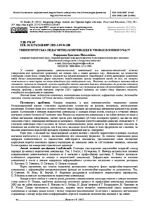 У статті проаналізовано ціннісно-етичний, поведінковий та навчально-методичний аспекти університетської педагогічної комунікації, які зазнали змін в умовах воєнного часу. Наголошено, що педагогічне спілкування стало більш емпатійним, чутливим та індивідуалізованим. Поведінковий аспект авдиторної комунікації набув більше ритуалізованих форм, натомість онлайн-навчання звузило невербальні засоби до тих, які можуть «вміститися» в межі екрану та чітко відведеного для співдіяльності часу. Уточнено, що особливого значення набула готовність педагога до інновацій, оскільки традиційні методи навчання довелося адаптувати до режимів змішаного та дистанційного навчання. Освітній процес в умовах воєнного часу неможливо втілити без різноманітних комбінацій методів, прийомів і засобів навчання, зокрема ТЗН і цифрових додатків, які дають змогу зберігати тяглість, емоційність та ефективність навчання.
