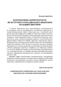 (The article examines the role of communicative competence as a key factor in the civic development of a person in the conditions of democratization of education. It is emphasized that in primary school, it performs multifunctional tasks: educational, socializing, and integration. It is found that communicative competence includes speech skills, the ability to dialogue, tolerance, and the ability to make informed decisions in joint activities. Pedagogical approaches, including partnership interaction, facilitation, and game technologies, create conditions for the child’s active participation in socially significant processes and are analyzed. The emphasis is on the importance of developing communicative competence in children with special educational needs and in the training of future teachers. It is concluded that communicative competence is not only the result, but also a means of implementing civic education, contributing to the formation of democratic culture and civic maturity of students.)