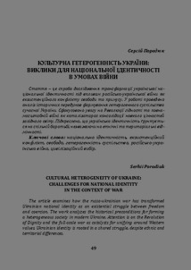Порадюк, С. (S. Poradiuk) (2025) Культурна гетерогенність України: виклики для національної ідентичності в умовах війни (Cultural heterogeneity of Ukraine: challenges for national identity in the context of war). Матеріали ХVIIІ-ої Міжнародної наукової конференції «Проблеми культурної ідентичності в ситуації сучасного діалогу культур».. pp. 49-56.