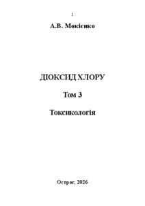 Мокієнко, А. В. (A. V. Mokiienko) (2026) Діоксид хлору. Том 3. Токсикологія. Видавництво Національного університету «Острозька академія», Острог.